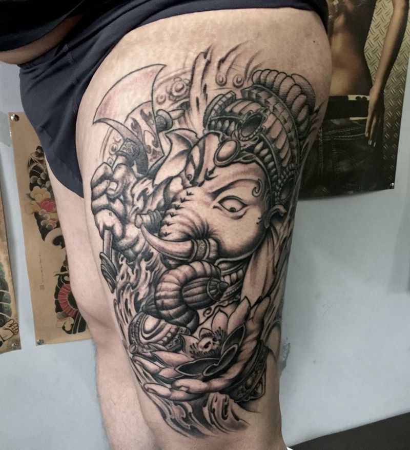 当前位置: 首页 >北京市纹身店-北京花刺纹身工作室纹身图案>象神!纹身图片_成品腿部传统动物宗教纹身图案