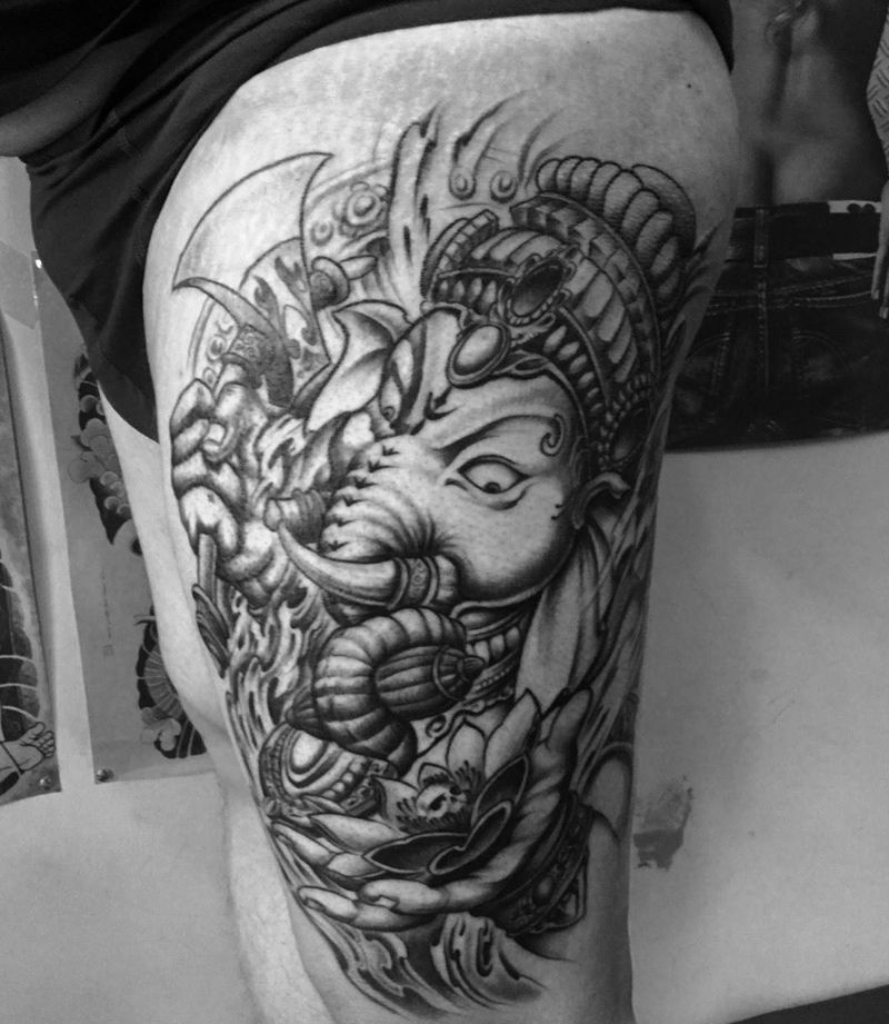 当前位置: 首页 >北京市纹身店-北京花刺纹身工作室纹身图案>象神!纹身图片_成品腿部传统动物宗教纹身图案