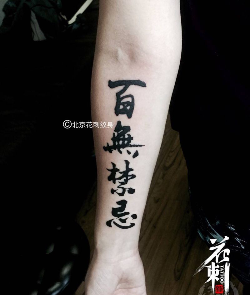 百无禁忌纹身图片_成品手臂传统字符纹身图案