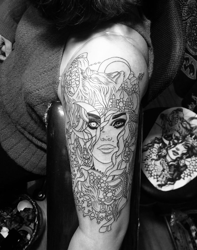 当前位置: 首页 >北京市纹身店-北京花刺纹身工作室纹身图案>初步割线!纹身图片_手臂欧美人物动物纹身图案