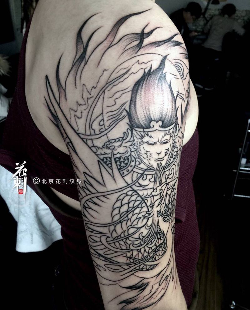 当前位置: 首页 >北京市纹身店-北京花刺纹身工作室纹身图案>【“凤”封“猴”侯拜相】纹身图片_手臂传统动物人物纹身图案