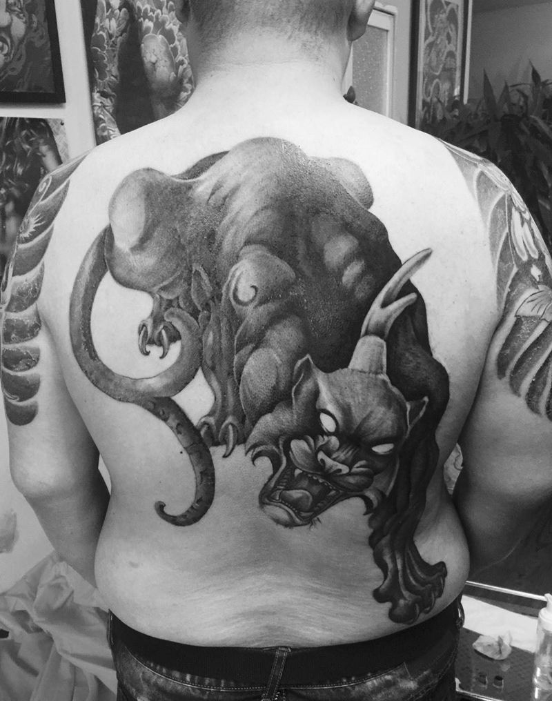 当前位置: 首页 >北京市纹身店-北京花刺纹身工作室纹身图案>貔貅纹身图片_背部传统动物纹身图案