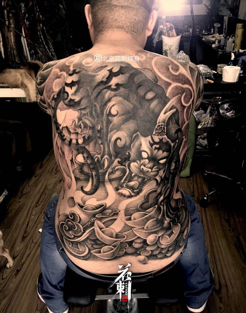 当前位置: 首页 >北京市纹身店-北京花刺纹身工作室纹身图案>招财进宝纹身图片_成品背部传统动物纹身图案