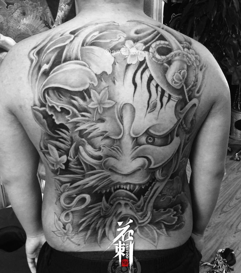 当前位置: 首页 >北京市纹身店-北京花刺纹身工作室纹身图案>满背般若一念间纹身图片_成品背部传统鬼神纹身图案