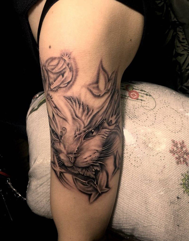 当前位置: 首页 >北京市纹身店-北京花刺纹身工作室纹身图案>写实小猫纹身图片_成品手臂欧美写实动物纹身图案