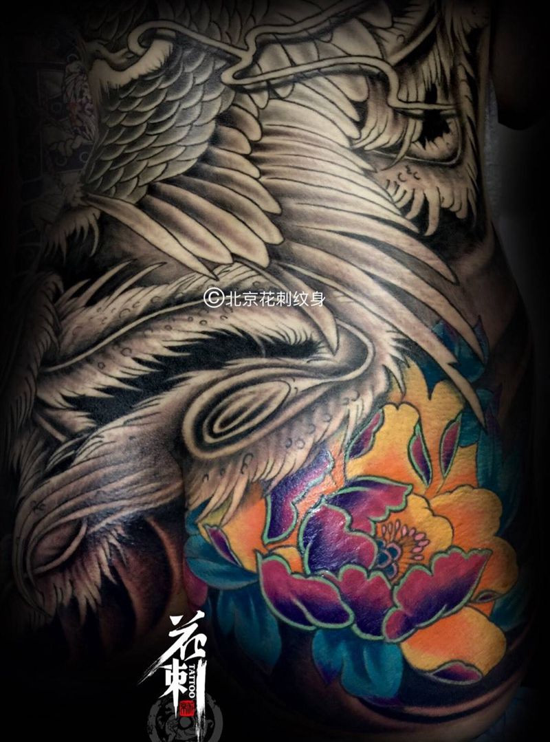 当前位置: 首页 >北京市纹身店-北京花刺纹身工作室纹身图案>满背凤凰!纹身图片_背部臀部传统动物植物纹身图案
