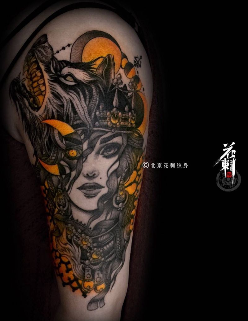 当前位置: 首页 >北京市纹身店-北京花刺纹身工作室纹身图案>狼妞!纹身图片_成品手臂欧美人物动物纹身图案
