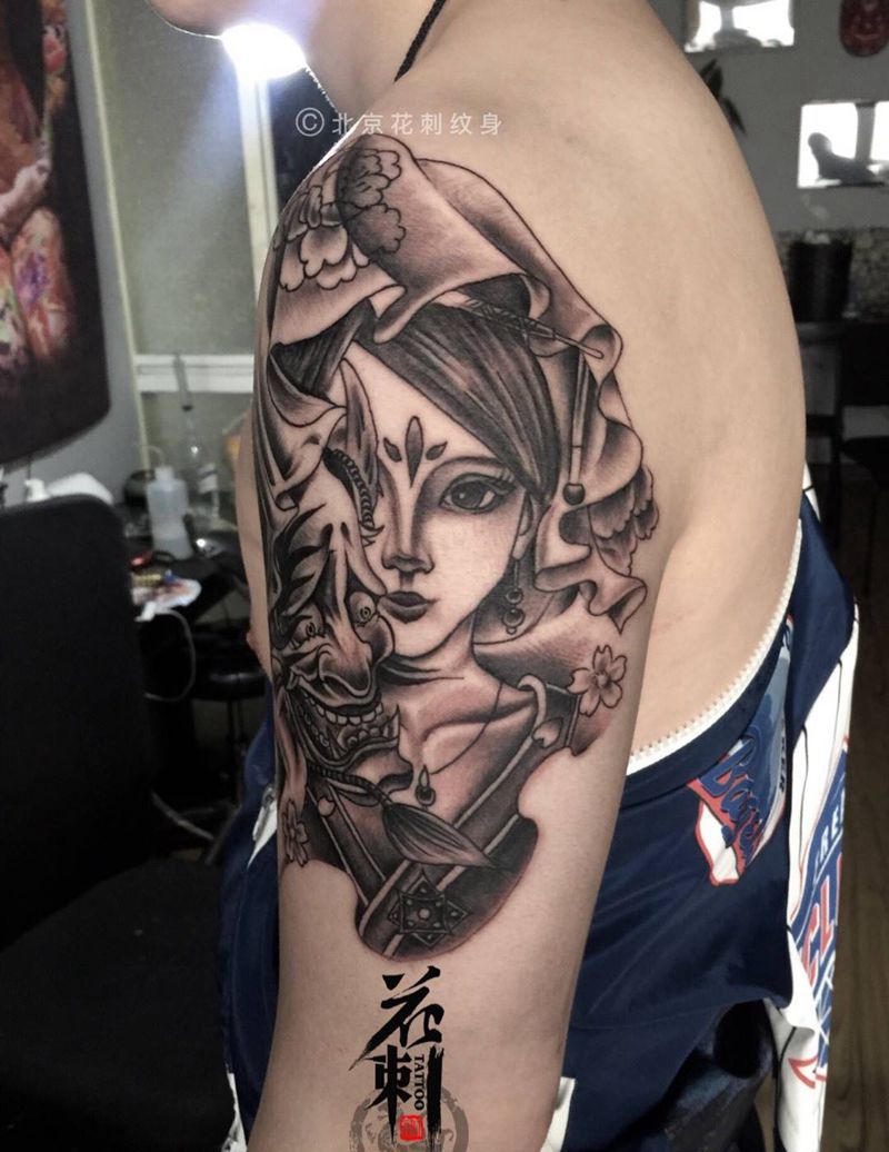 当前位置: 首页 >北京市纹身店-北京花刺纹身工作室纹身图案>大臂艺妓般若纹身图片_