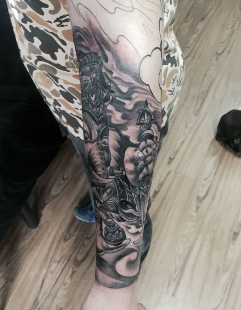 当前位置: 首页 >北京市纹身店-北京花刺纹身工作室纹身图案>传统花臂象神未完成纹身图片_手臂传统动物纹身图案