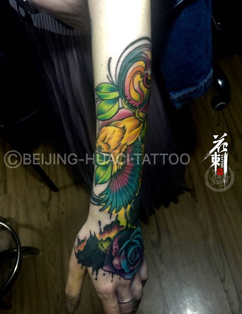 当前位置: 首页 >北京市纹身店-北京花刺纹身工作室纹身图案>泼墨玫瑰遮盖未完成纹身图片_手臂手部欧美清新动物植物纹身图案