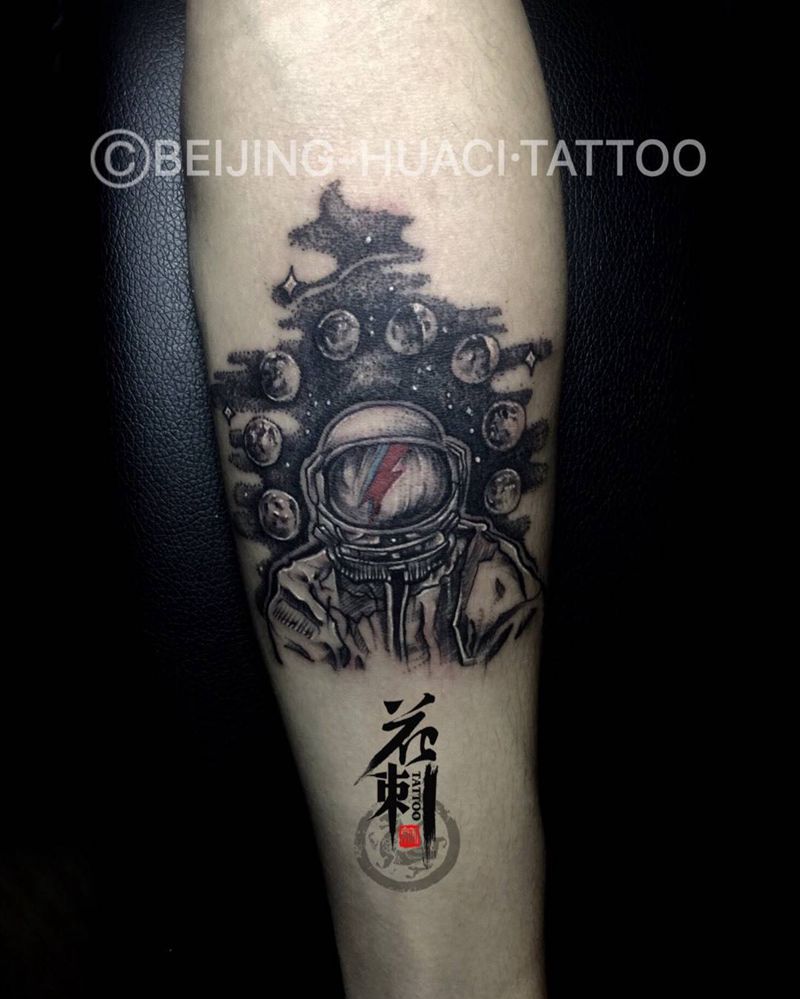 单针完成宇航员小图纹身图片_成品手臂欧美清新人物纹身图案