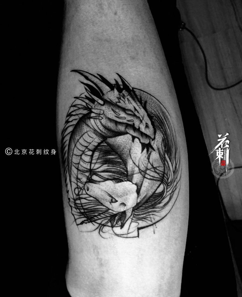 当前位置: 首页 >北京市纹身店-北京花刺纹身工作室纹身图案>龙马精神!纹身图片_成品腿部欧美清新图腾动物纹身图案