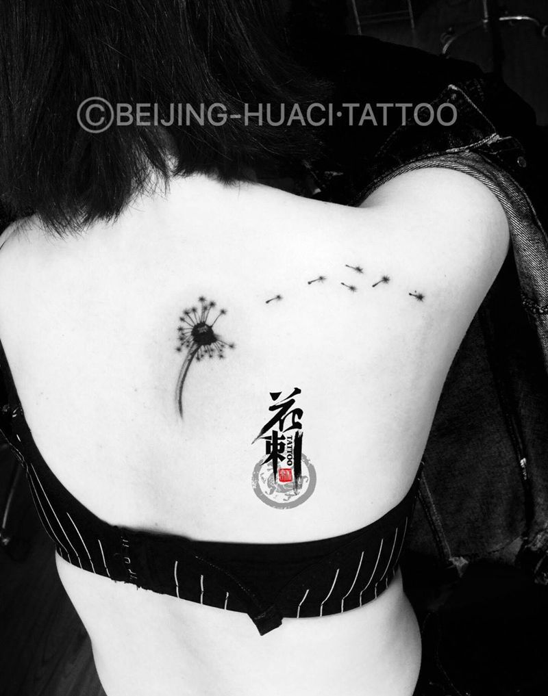 当前位置: 首页 >北京市纹身店-北京花刺纹身工作室纹身图案>蒲公英纹身图片_成品背部肩部欧美清新植物纹身图案