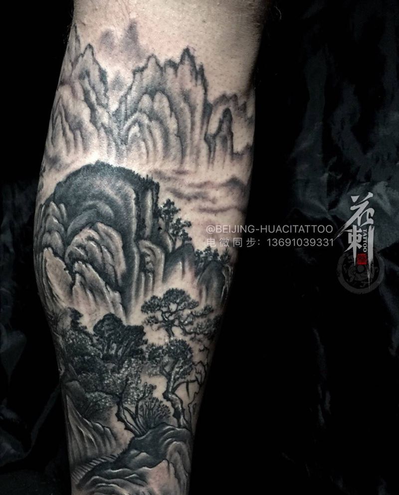 当前位置: 首页 >北京市纹身店-北京花刺纹身工作室纹身图案>国画山水纹身图片_腿部传统国画静物植物纹身图案