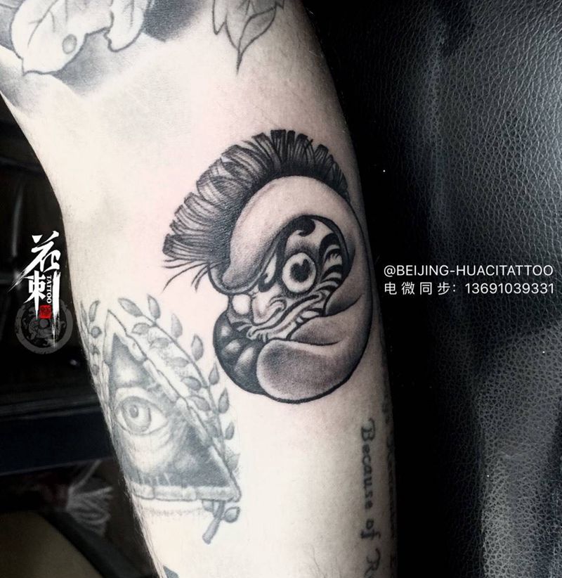当前位置: 首页 >北京市纹身店-北京花刺纹身工作室纹身图案>朋克达摩来个蛋!纹身图片_成品手臂传统人物清新纹身图案