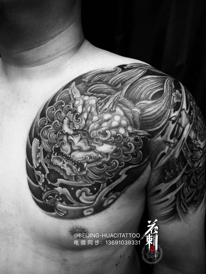 传统半甲纹身图片_成品胸部手臂传统人物动物纹身图案