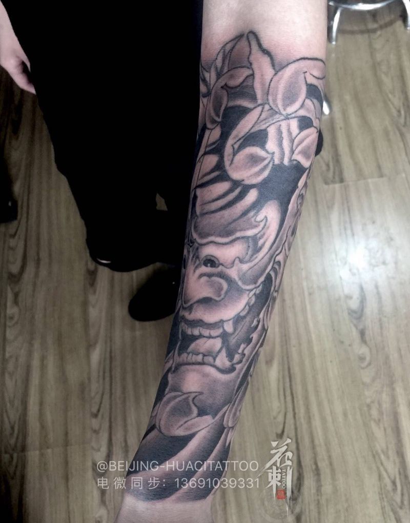 当前位置: 首页 >北京市纹身店-北京花刺纹身工作室纹身图案>修改上色雾面纹身图片_成品手臂传统人物鬼神纹身图案
