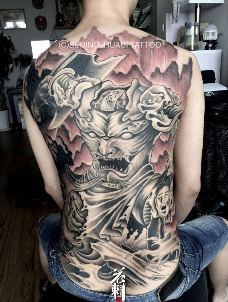 当前位置: 首页 >北京市纹身店-北京花刺纹身工作室纹身图案>满背刑天纹身图片_成品背部传统人物鬼神纹身图案
