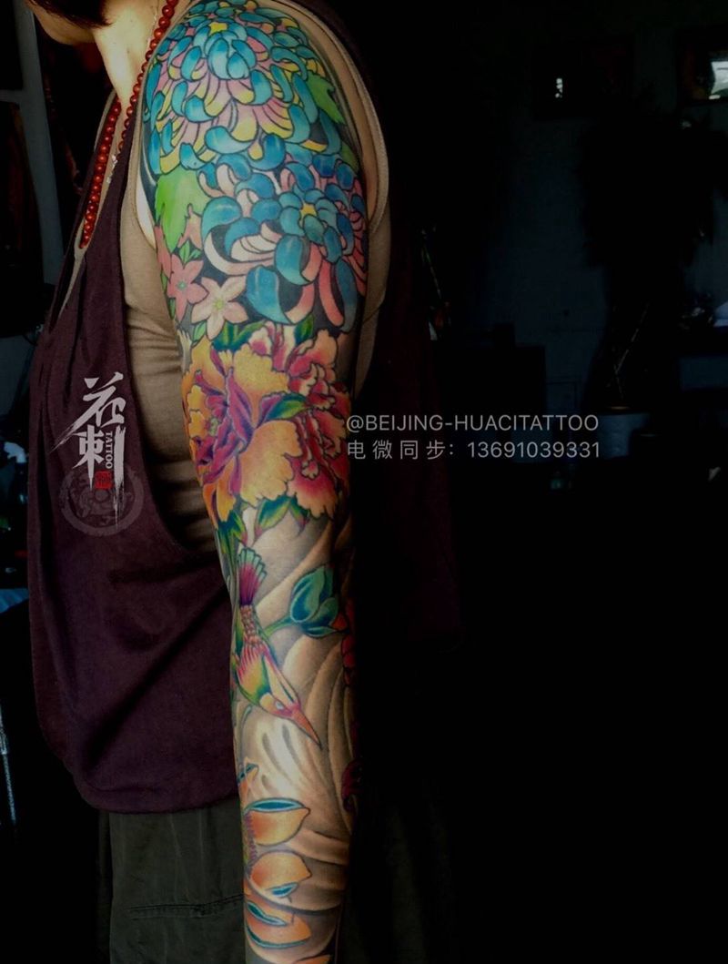 当前位置: 首页 >北京市纹身店-北京花刺纹身工作室纹身图案>彩色花臂纹身图片_成品手臂传统植物纹身图案