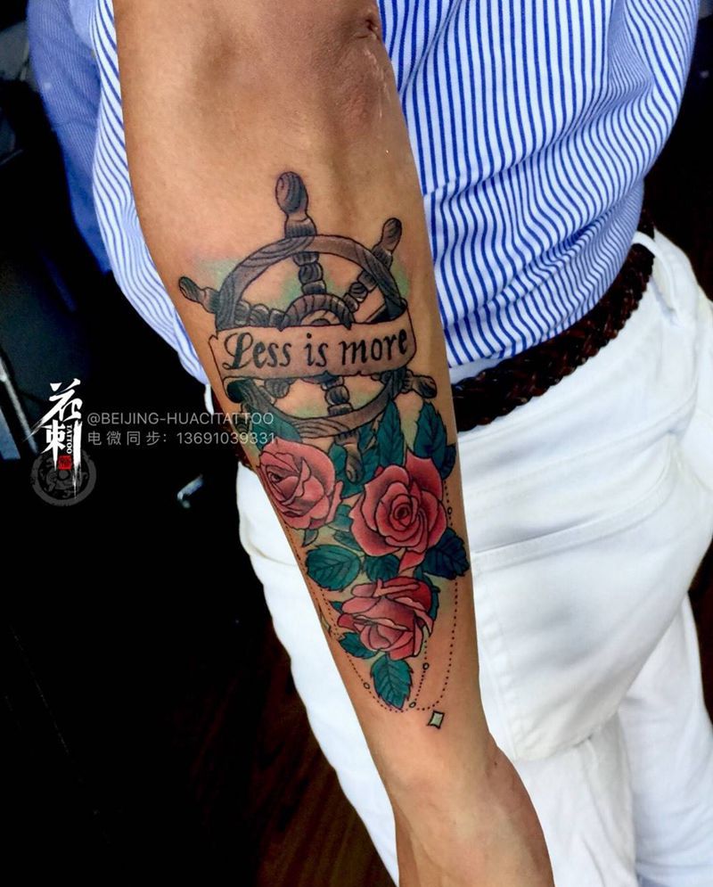 当前位置: 首页 >北京市纹身店-北京花刺纹身工作室纹身图案>玫瑰船舵纹身图片_手臂Old School水彩纹身图案