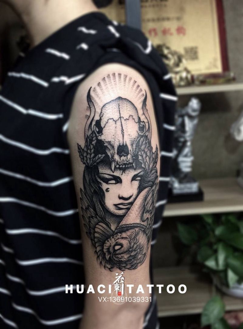 当前位置: 首页 >北京市纹身店-北京花刺纹身工作室纹身图案>大臂欧美妞纹身图片_手臂点刺欧美写实纹身图案