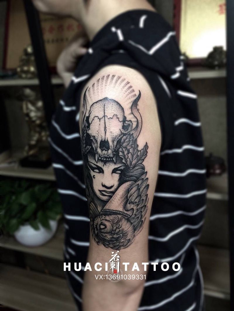 • 纹身吧推荐的披肩图腾半胛纹身图案作品展示