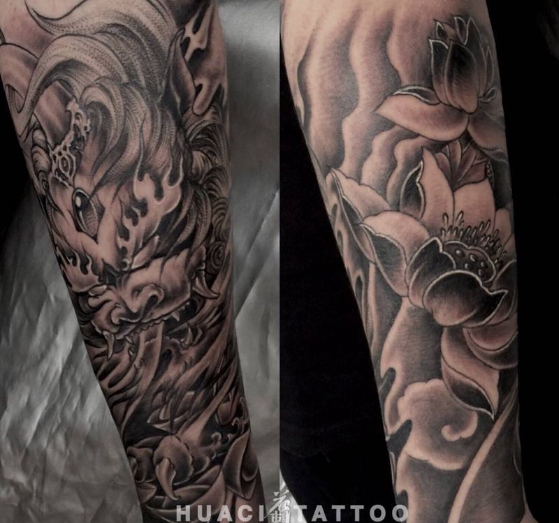 当前位置: 首页 >北京市纹身店-北京花刺纹身工作室纹身图案>貔貅莲花纹身图片_手臂新传统瑞兽貔貅莲花纹身图案