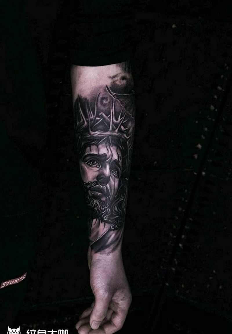 耶稣纹身图片_手臂欧美写实耶稣纹身图案