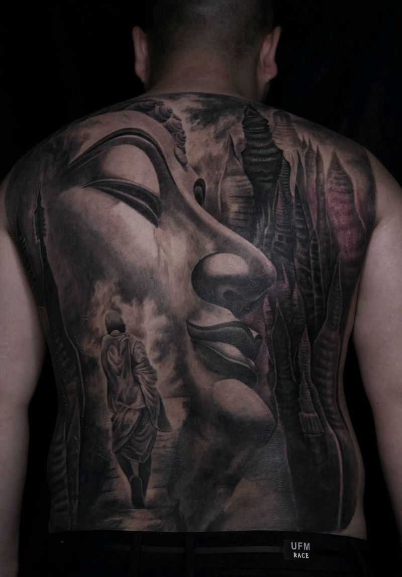当前位置: 首页 >北京市纹身店-墨研纹身纹身图案>《朝圣》纹身图片_背部欧美写实佛纹身图案