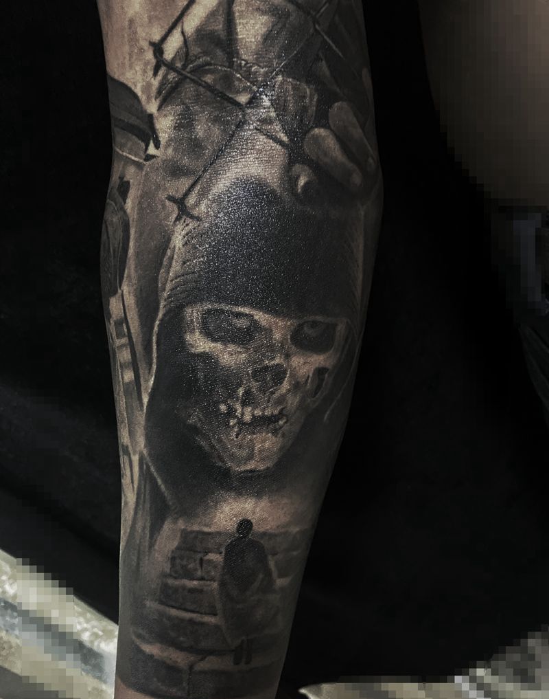 当前位置: 首页 >北京市纹身店-墨研纹身纹身图案>战争纹身图片_手臂欧美写实战争人物纹身图案