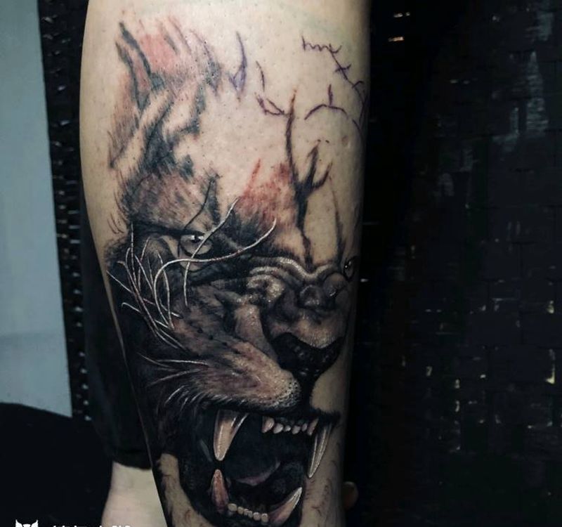 当前位置: 首页 >北京市纹身店-墨研纹身纹身图案>大狮子王纹身图片_腿部欧美写实纹身图案
