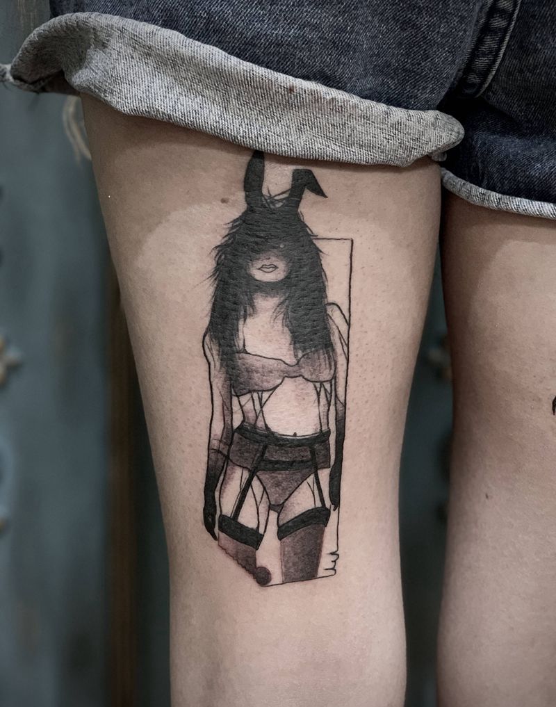 妞子纹身图片_腿部纹身图案