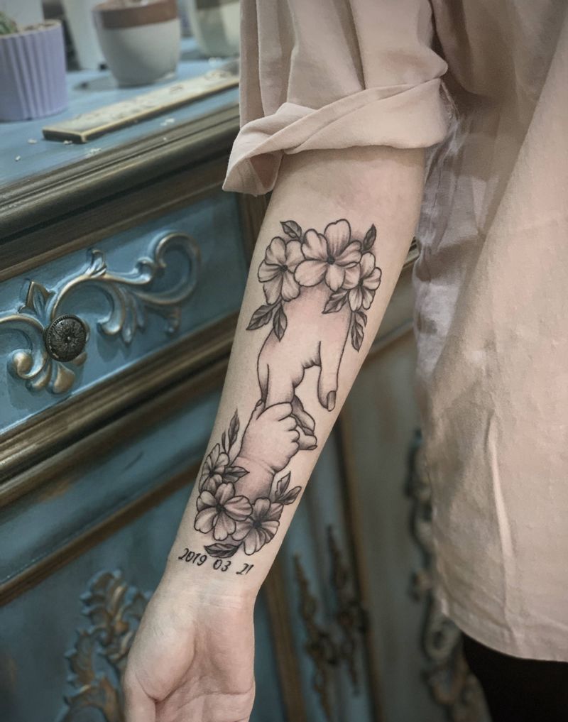 • T家庭图,一家四口生日纪念!纹身图片_手臂纹身图案