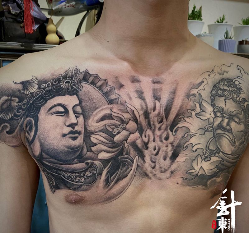 佛纹身图片_胸部纹身图案
