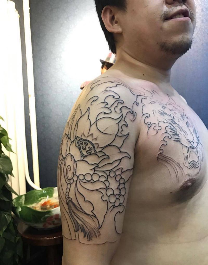 一组15张莲花纹身手