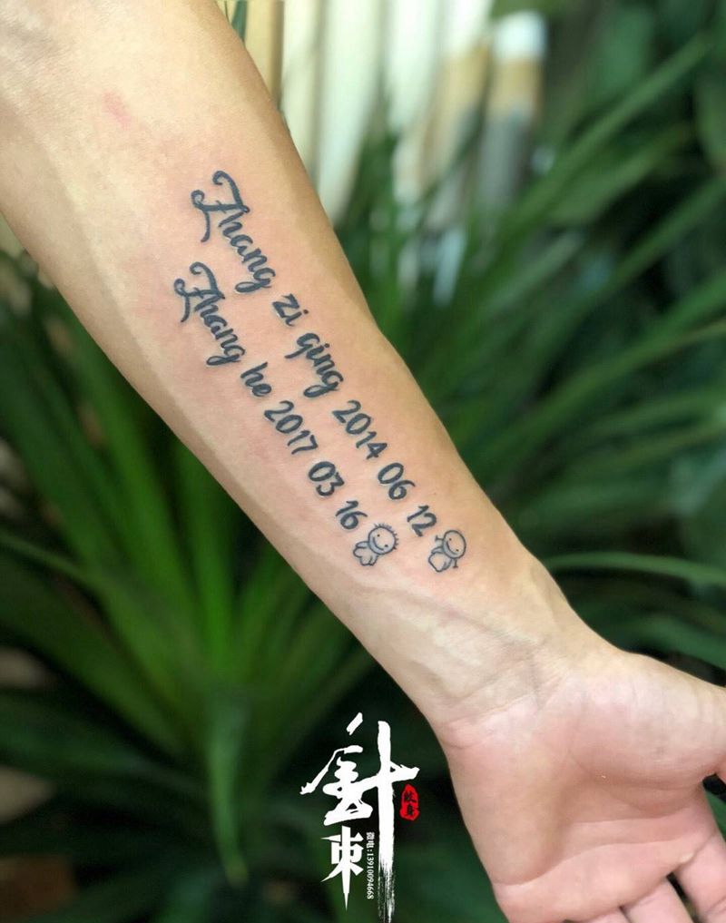 • T家庭图,一家四口生日纪念!纹身图片_手臂纹身图案