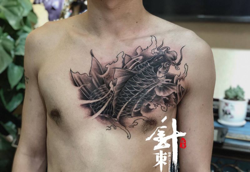 鲤鱼(遮盖)纹身图片_胸部新传统纹身图案