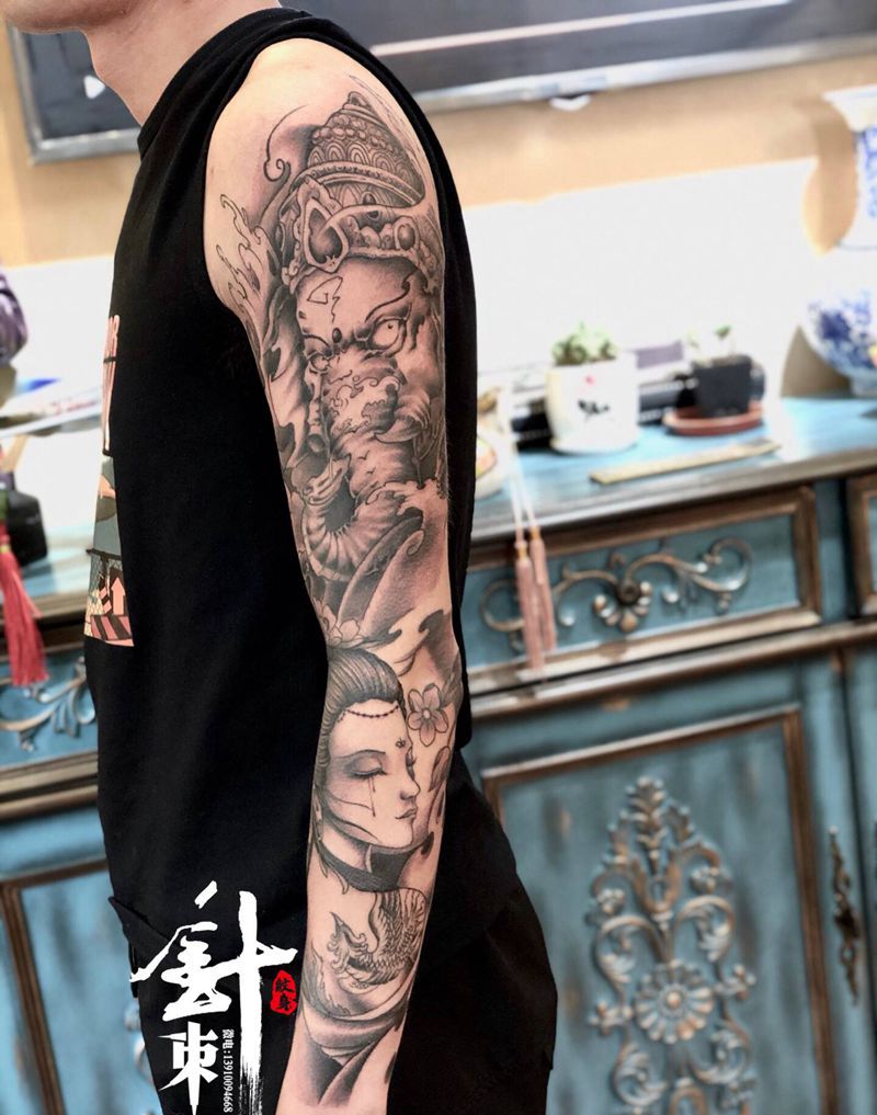 当前位置: 首页 >北京市纹身店-北京针刺纹身纹身图案>花臂纹身图片_手臂新传统纹身图案
