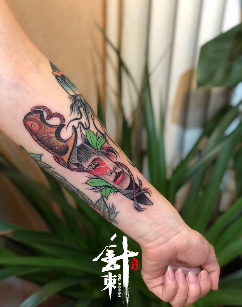 当前位置: 首页 >北京市纹身店-北京针刺纹身纹身图案>new school纹身图片_手臂New School纹身图案