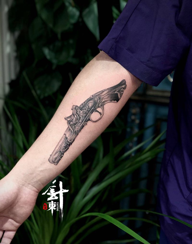 当前位置: 首页 >北京市纹身店-北京针刺纹身纹身图案>手枪纹身图片_手臂纹身图案