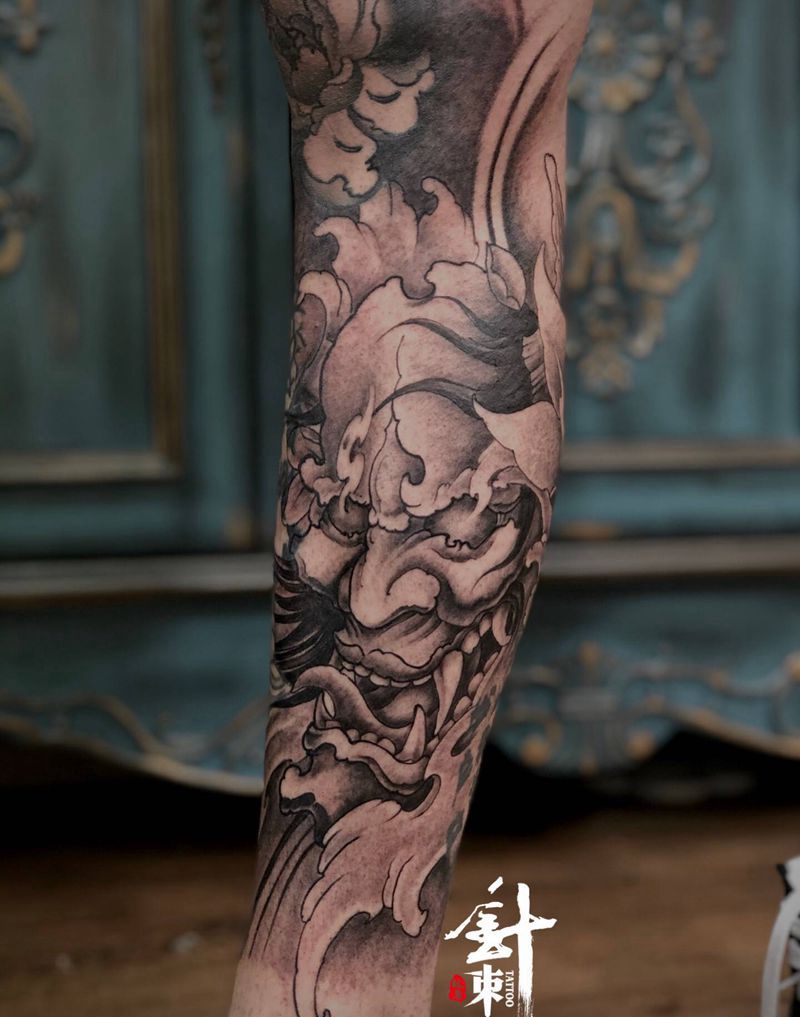 般若纹身图片_腿部纹身图案