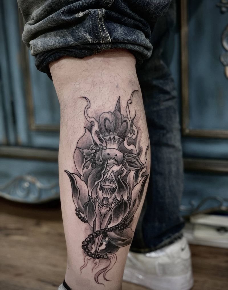 当前位置: 首页 >北京市纹身店-北京针刺纹身纹身图案>降魔杵纹身图片_腿部新传统纹身图案