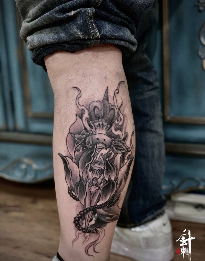当前位置: 首页 >北京市纹身店-北京针刺纹身纹身图案>降魔杵纹身图片_腿部新传统纹身图案