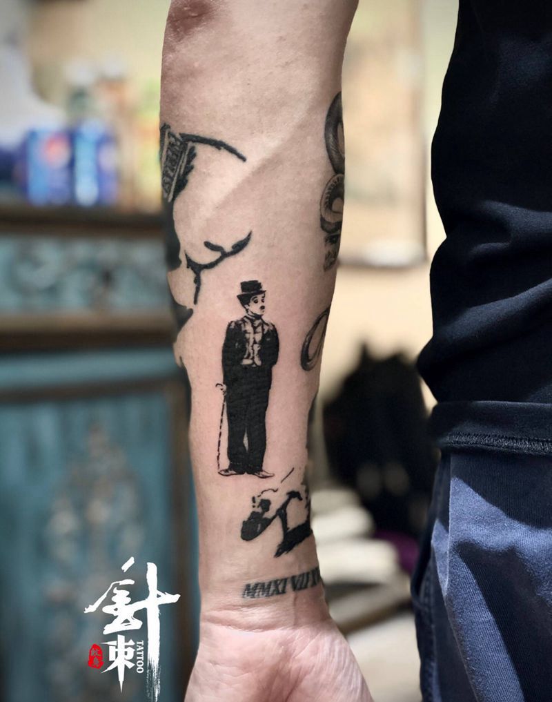 当前位置: 首页 >北京市纹身店-北京针刺纹身纹身图案>卓别林纹身图片_手臂纹身图案