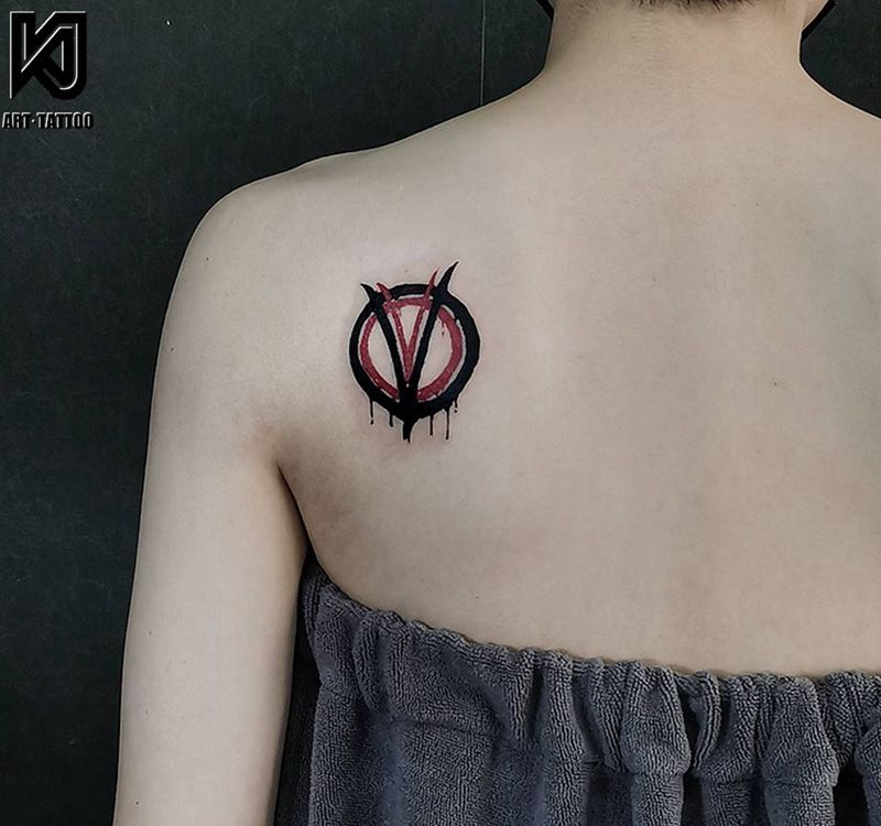 V字仇杀队纹身图片_肩部图腾纹身图案
