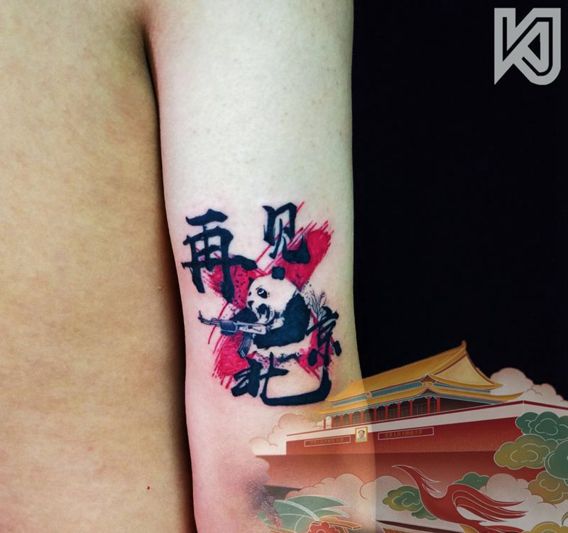 再见•北京纹身图片_手臂花体字汉字纹身图案