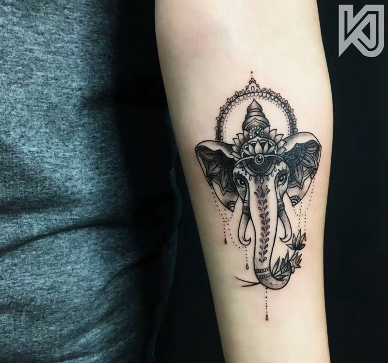 当前位置: 首页 >北京市纹身店-空间•ART•TATTOO STUDIO纹身图案>象神纹身图片_手臂点刺几何象神纹身图案