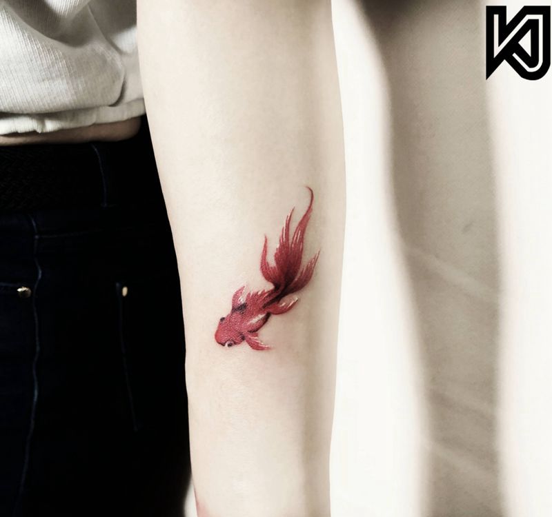 金鱼纹身图片_手臂欧美写实金鱼纹身图案