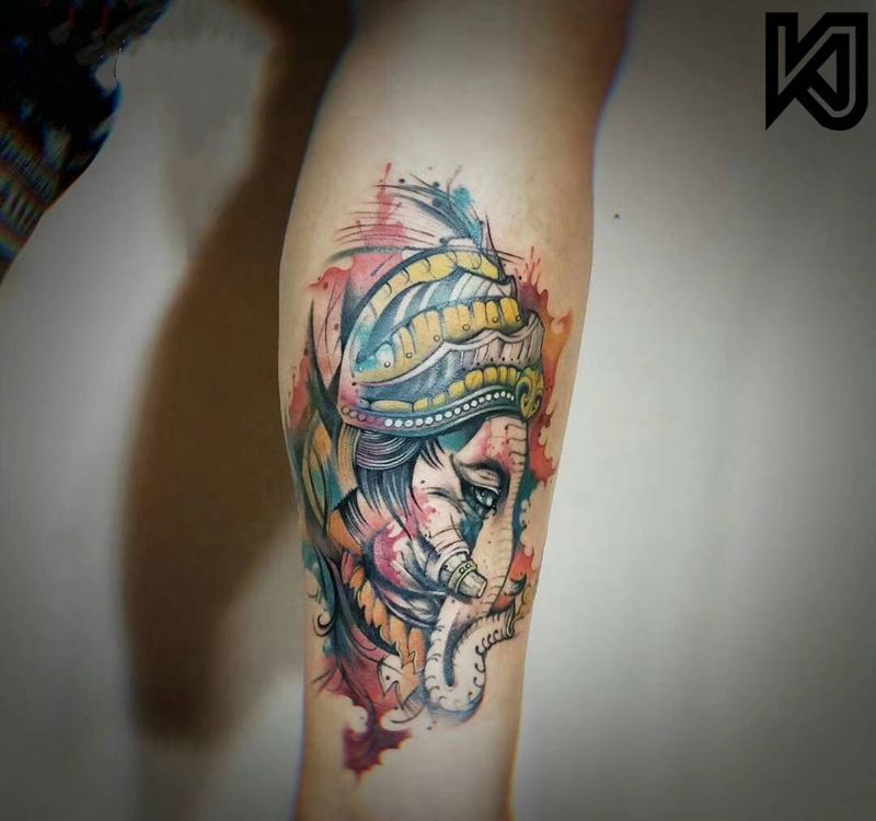 当前位置: 首页 >北京市纹身店-空间•ART•TATTOO STUDIO纹身图案>象神纹身图片_腿部水彩象神纹身图案