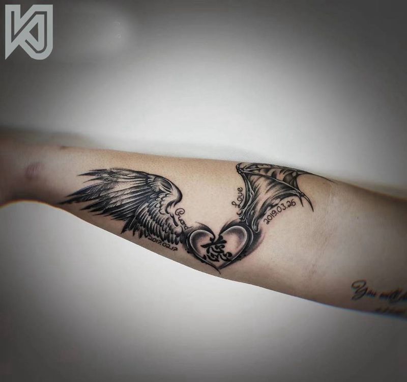 天使与恶魔纹身图片_手臂欧美写实天使与恶魔纹身图案